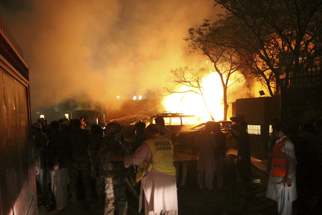 «Μια έκρηξη συγκλόνισε τον χώρο στάθμευσης του ξενοδοχείου Serena», ανέφερε στο πρακτορείο Reuters ο αξιωματικός Νασίρ Μάλικ.