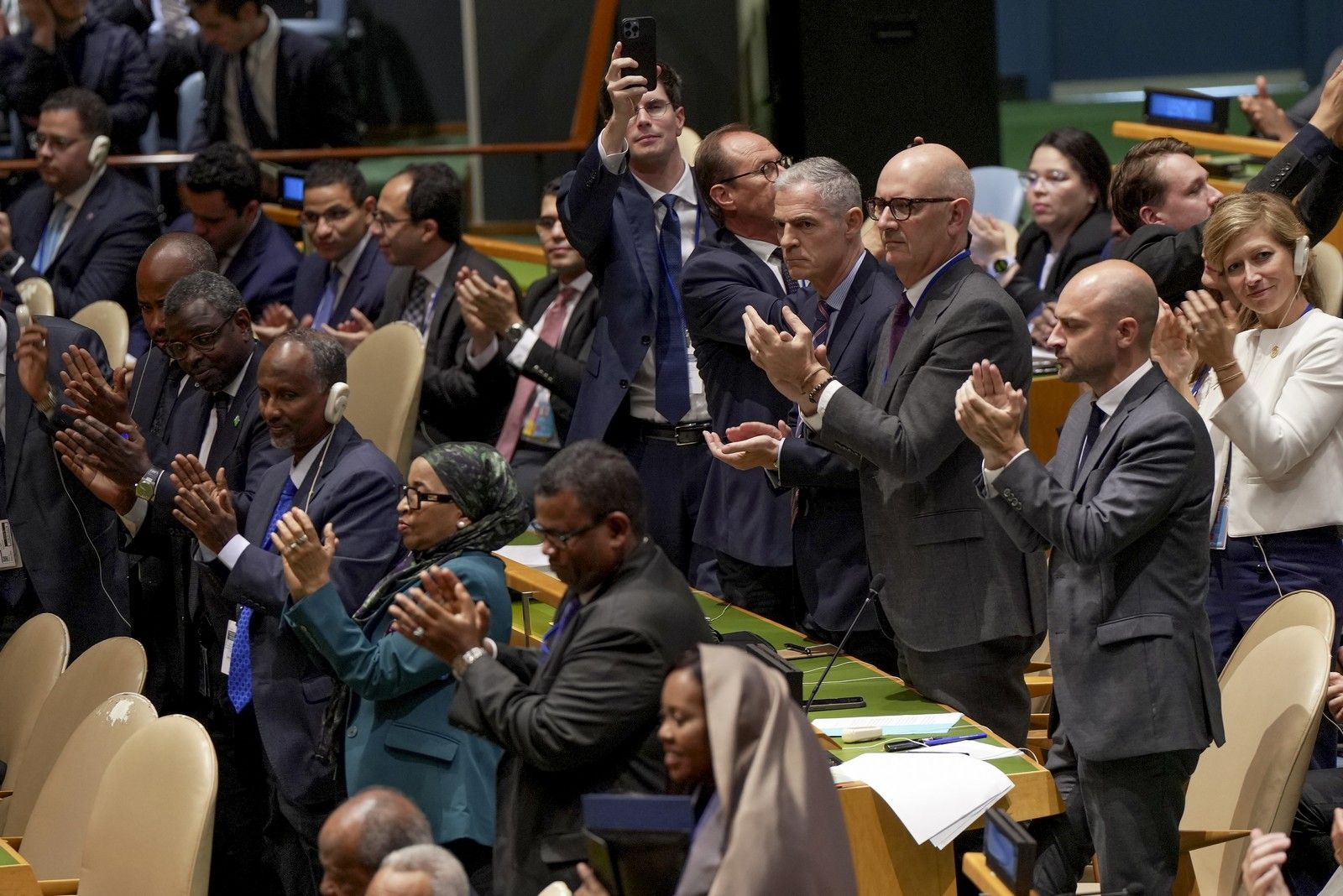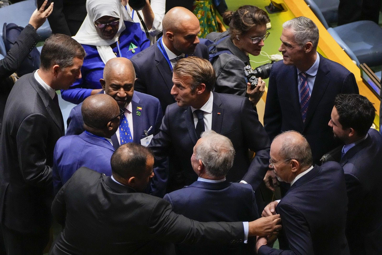 Και αυτό φάνηκε πως αναμφίβολα ήταν στο μυαλό του Μακρόν και των συνεργατών του, καθώς οργάνωναν με λεπτομέρεια την εμφάνιση στη Γενική Συνέλευση, μία στιγμή που προετοιμαζόταν εδώ και πολλούς μήνες και περιελάμβανε δεκάδες διπλωματικές συναντήσεις σε διάφορες χώρες για τον συντονισμό της επίσημης αναγνώρισης του παλαιστινιακού κράτους.