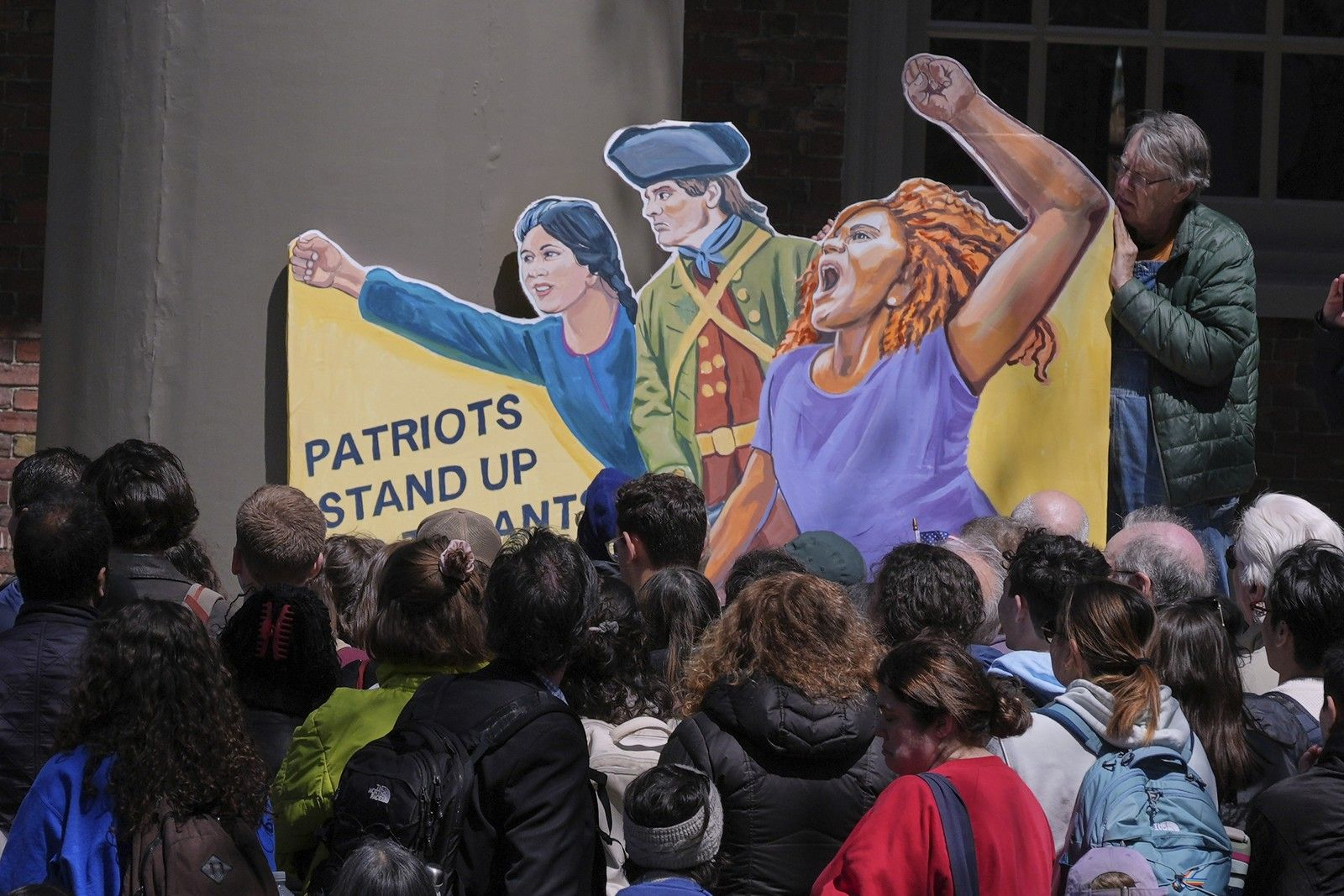 Φοιτητές, καθηγητές και μέλη της κοινότητας του Πανεπιστημίου Χάρβαρντ διαδηλώνουν την Πέμπτη 17 Απριλίου 2025 στο Κέιμπριτζ της Μασαχουσέτης AP Photo Charles Krupa