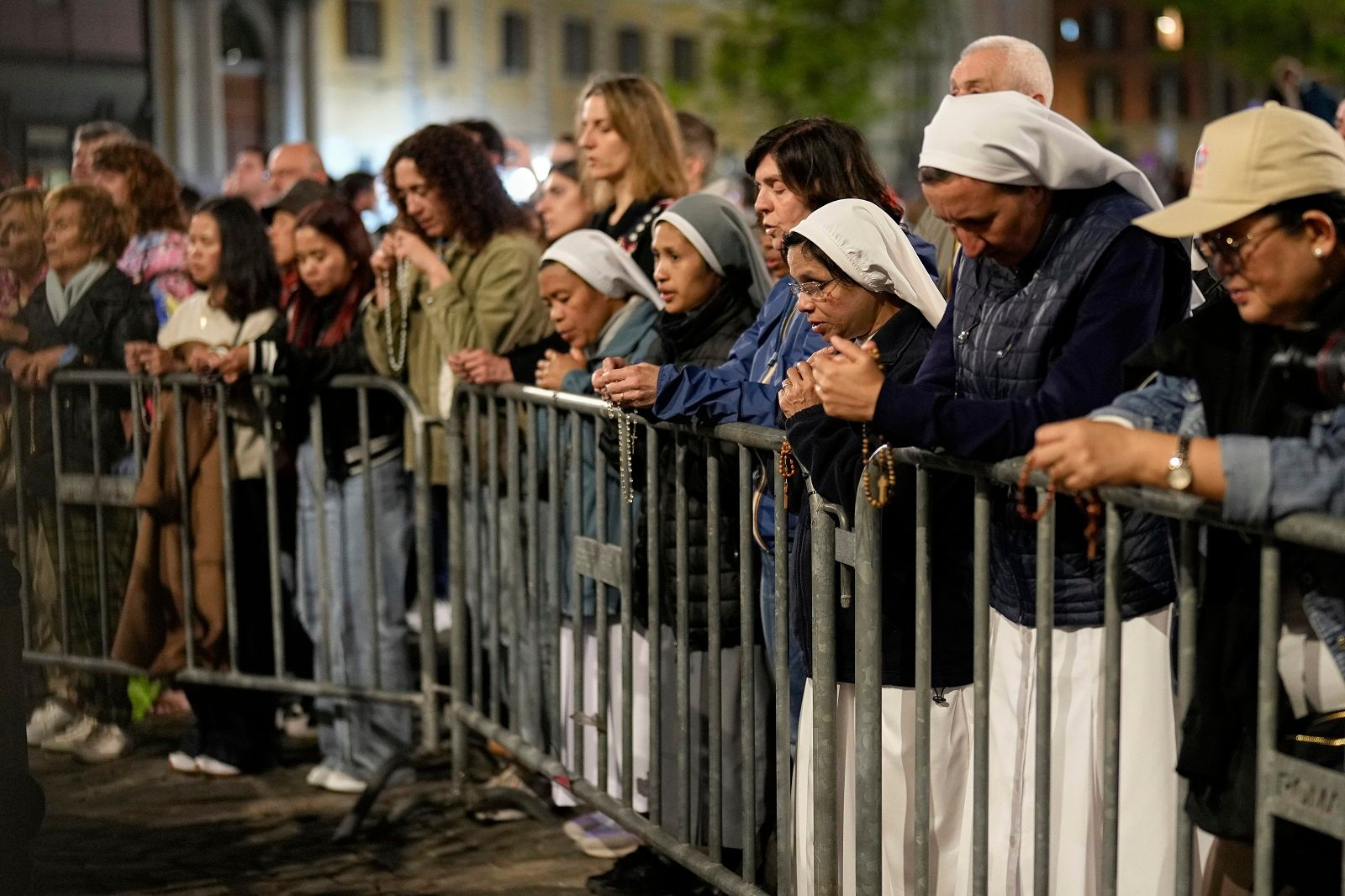 Πλήθος πιστών στο Βατικανό για να αποχαιρετήσουν τον Πάπα Φραγκίσκο (AP Photo/Andreea Alexandru)