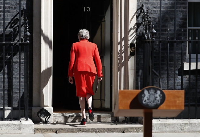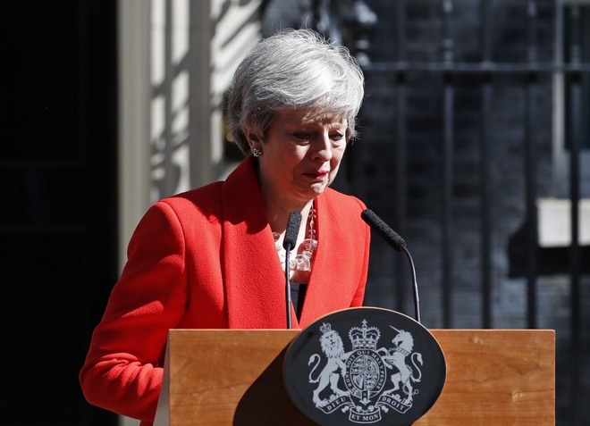 Η Μέι υπέκυψε ουσιαστικά στην αμείλικτη πίεση από την παράταξή της να παραιτηθεί στον απόηχο της αποτυχίας της να υλοποιήσει την έξοδο από την Ε.Ε. σύμφωνα με το χρονοδιάγραμμα.
