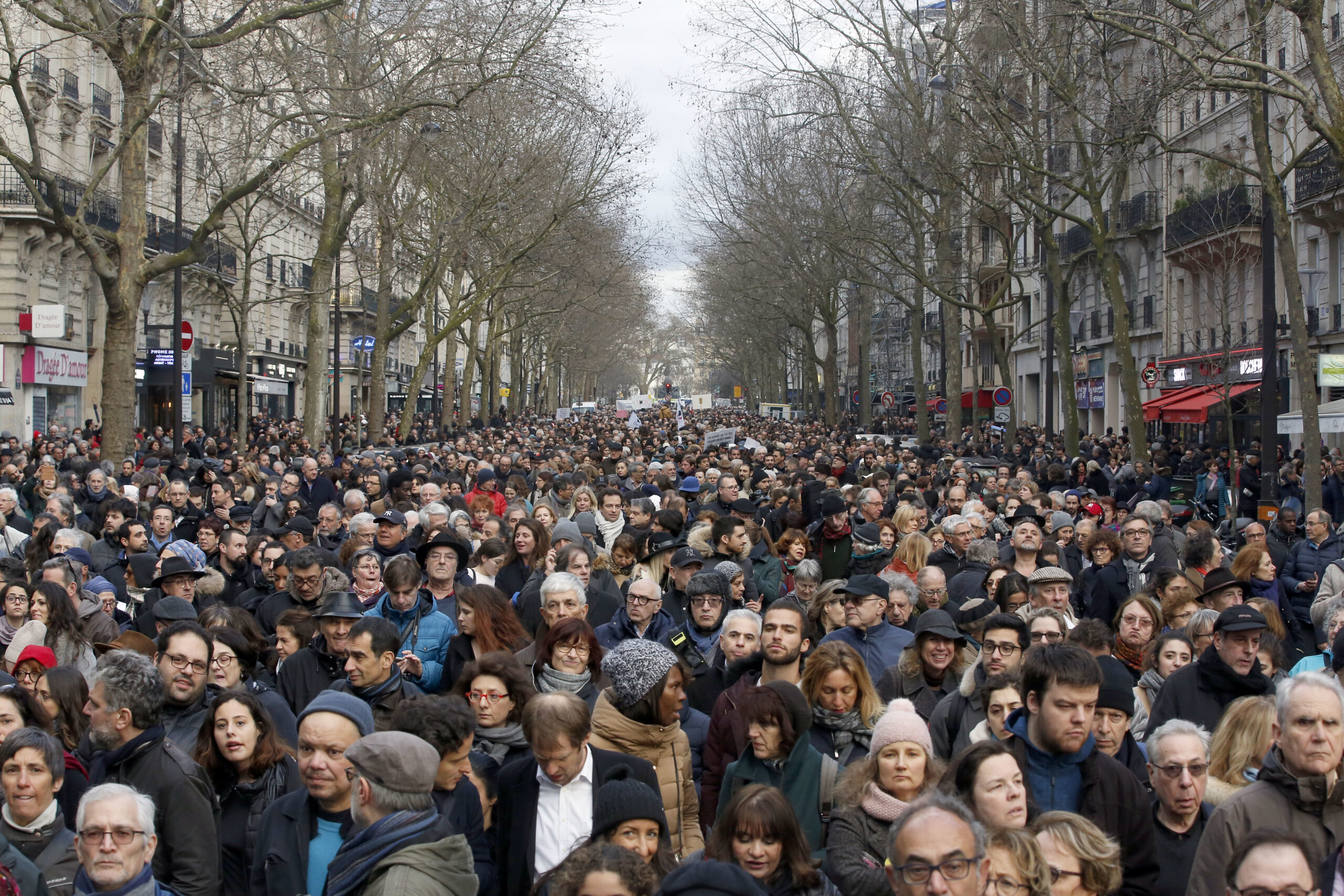 Στην κορυφή της πορείας, που οργάνωσε το Αντιπροσωπευτικό Συμβούλιο Εβραϊκών Θεσμών της Γαλλίας (Crif), βρίσκονταν υπουργοί και υφυπουργοί της γαλλικής κυβέρνησης. Μεταξύ τους, ο Ζεράρ Κολόμπ (Εσωτερικών), η Φρανσουάζ Νισέν (Πολιτισμού) και ο Ζαν Μισέλ Μπλανκέ (Παιδείας).