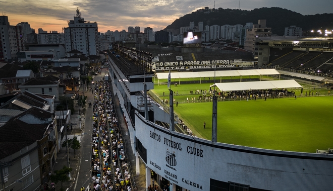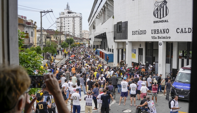 Χιλιάδες Βραζιλιάνοι συγκεντρώθηκαν έξω από το γήπεδο της Σάντος, προκειμένου να πουν το ύστατο χαίρε στον Πελέ, η σορός του οποίου εκτιθόταν σε 24ωρο λαϊκό προσκύνημα.