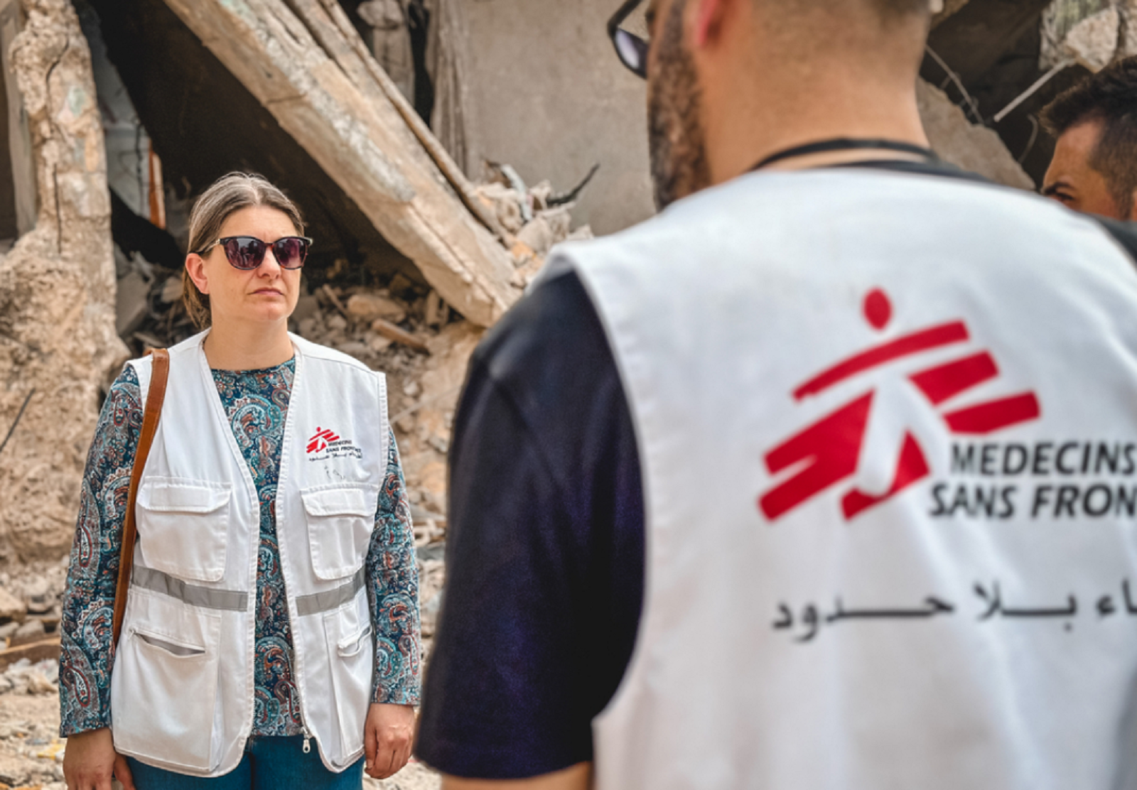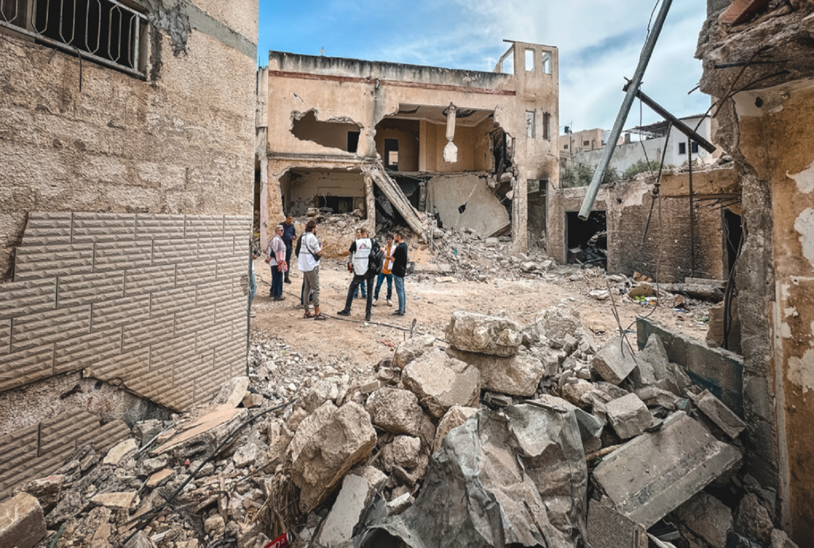 Η IttaHelland-Hansen, συντονίστρια του προγράμματος των Γιατρών Χωρίς Σύνορα, και ο Mohammed Shraim, βοηθός συντονιστή του προγράμματος των Γιατρών Χωρίς Σύνορα, βρίσκονται στον καταυλισμό της Jenin με οργανώσεις της κοινότητας για να αξιολογήσουν τις ζημιές και τις ανάγκες μετά τη βίαιη ισραηλινή στρατιωτική εισβολή.
