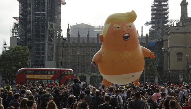 Το μπαλόνι με την μορφή του Ντόναλντ Τραμπ ως οργισμένο μωρό υψώθηκε πάνω από το βρετανικό κοινοβούλιο και είναι ίσως η πιο… “ενθουσιώδης” υποδοχή που θα μπορούσε να αναμένει ο Αμερικανός πρόεδρος από την καταστροφική του επίσκεψη στη Βρετανία.