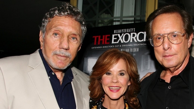 In this photo released by Starpix, "The Exorcist" author William Peter Blatty, left, joins Linda Blair, who starred in the 1973 film and William Friedkin, the film's director, at a screening of the remastered film, Wednesday, Sept. 29, 2010 held at the Museum of Modern Art in New York. (AP Photo/Starpix, Dave Allocca) AP