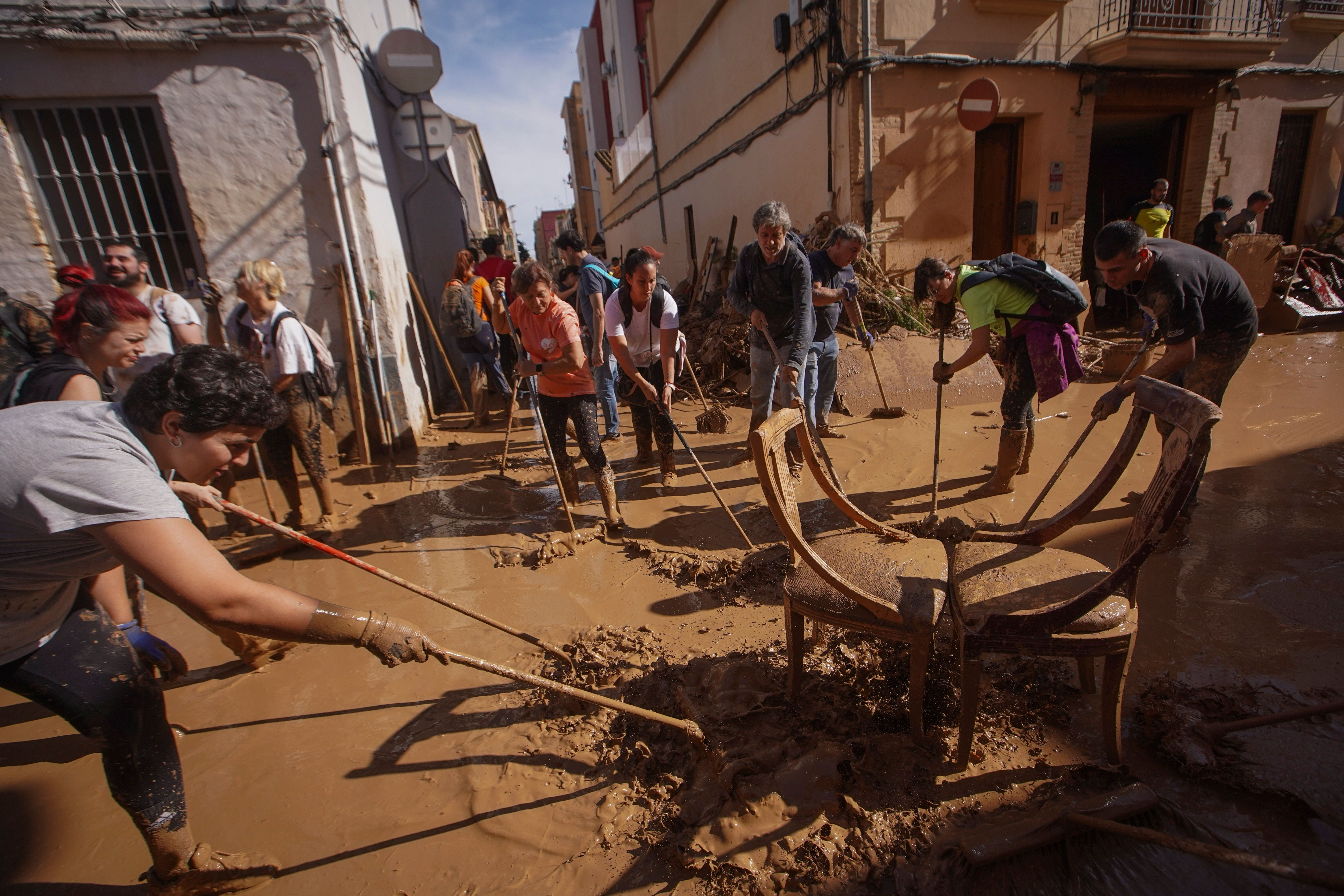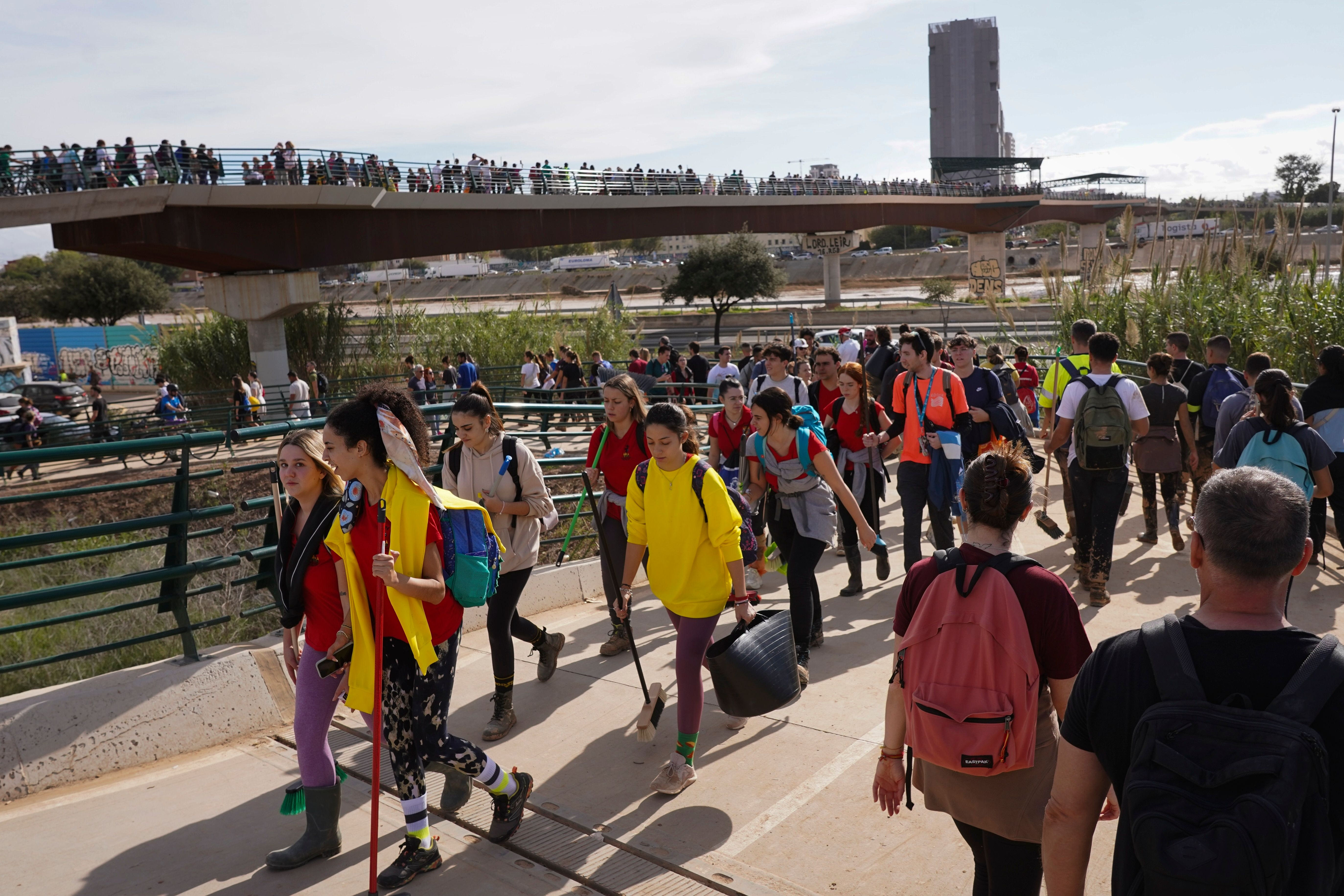 Την ίδια ώρα, χιλιάδες είναι οι εθελοντές που φτάνουν στην Βαλένθια από κάθε μεριά της χώρας και προσεγγίζουν την περιοχή περπατώντας, προκειμένου να προσφέρουν την βοήθειά τους ώστε να καθαριστεί η πόλη από τους τόνους λάσπης που την έχουν καλύψει. Με φτυάρια, σκούπες, σφουγγαρίστρες και κουβάδες κάνουν ό,τι μπορούν ώστε να συνδράμουν στην προσπάθεια των κατοίκων και των συνεργείων.