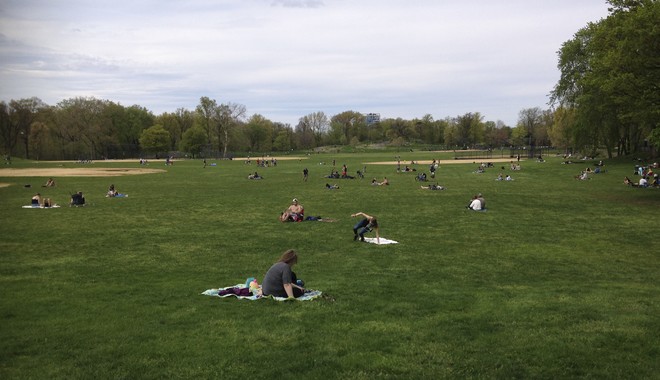 Η θερμοκρασία ανέβηκε το περασμένο Σάββατο, 2 Μαΐου στη Νέα Υόρκη και αυτό ήταν αρκετό για τους πολίτες που αποφάσισαν να βγουν από τα σπίτια τους και να επισκεφτούν τα δύο μεγάλα πάρκα Σέντραλ και Πρόσπεκτ Παρκ. Ο κόσμος θέλησε να απολαύσει τον ήλιο, να χαλαρώσει και να γυμναστεί και έτσι τα πάρκα γέμισαν, κρατώντας στην πλειοψηφία των περιπτώσεων της απαραίτητες αποστάσεις δύο και πλέον μέτρων.