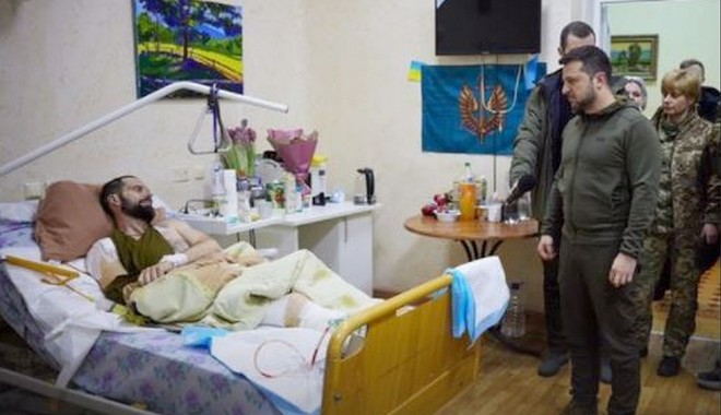 Στο πλευρό των στρατιωτών της Ουκρανίας που τραυματίστηκαν στο πεδίο της μάχης βρέθηκε ο πρόεδρος της χώρας. "Χάρη σε εσάς, δεν γίναμε σκλάβοι".