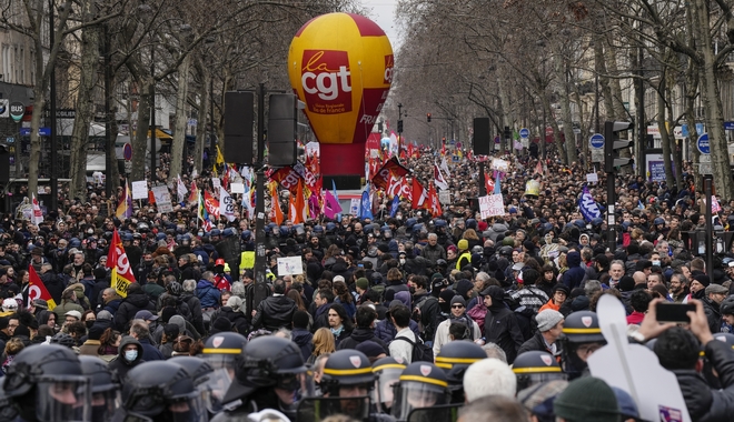 Διαμαρτυρίες στη Γαλλία για το νομοσχέδιο του Εμανουέλ Μακρόν για το συνταξιοδοτικό 2023 Lewis Joly/AP Photo