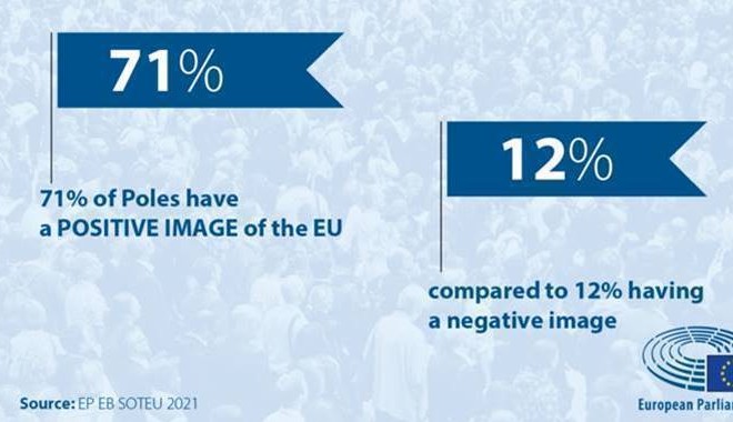 Συγκεκριμένα, σύμφωνα με το Ευρωβαρόμετρο του Ευρωπαϊκού Κοινοβουλίου, το 71% των Πολωνών έχουν καλή εικόνα για την ΕΕ, με μόλις το 12% των ερωτηθέντων να απαντά πως βλέπει αρνητικά την Ευρωπαϊκή Ένωση.