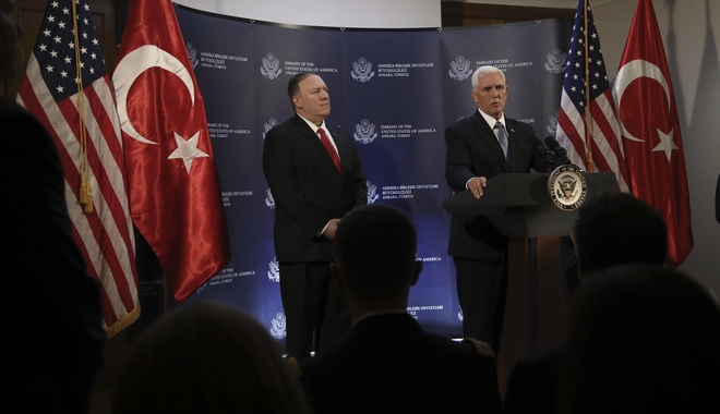 Ωστόσο, η τουρκική στρατιωτική επίθεση εξόργισε την αμερικανική κοινή γνώμη, το Πεντάγωνο και τους αξιωματούχους των αμερικανικών υπηρεσιών ασφαλείας, οι οποίοι άσκησαν πίεση στον τότε αμερικανό πρόεδρο να στείλει τους Πενς και Πομπέο στην Άγκυρα προς εξεύρεση λύσης.