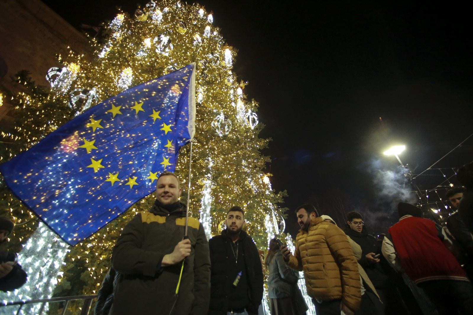 Στο Τμπιλίσι, δεκάδες χιλιάδες φιλοευρωπαίοι διαδηλωτές συγκεντρώθηκαν μπροστά από το κοινοβούλιο της Γεωργίας για να γιορτάσουν την καινούργια χρονιά, σε μια συνέχεια των διαδηλώσεων που κάνουν εδώ και ένα μήνα κατά της απόφασης της κυβέρνησης να αναστείλει τη διαδικασία ένταξης στην ΕΕ.