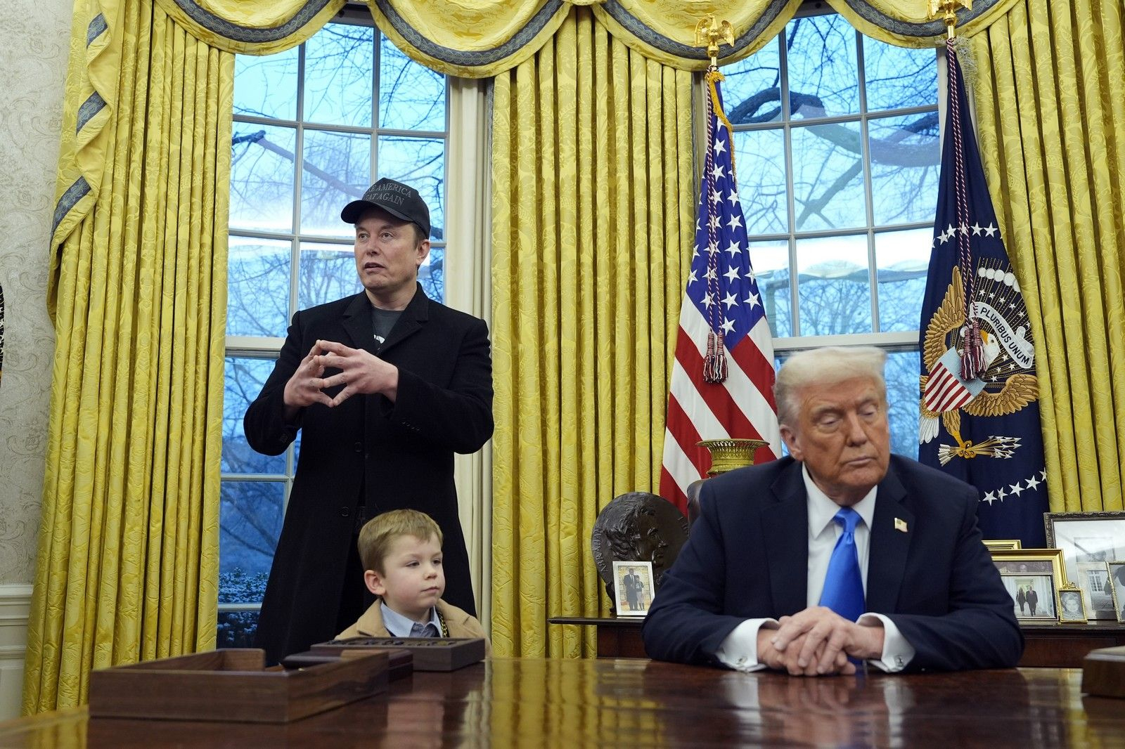 Ο Ντόναλντ Τραμπ και ο Ίλον Μασκ έδωσαν μια παράσταση δύναμης στον Λευκό Οίκο το απόγευμα της Τρίτης. Ο Μασκ, φορώντας μαύρο καπέλο MAGA, μακρύ σκοτεινό παλτό και κρατώντας πού και πού τον γιο του X στους ώμους, στεκόταν μπροστά από ένα περίτεχνο παράθυρο, ενώ έξω έπεφτε χιόνι.