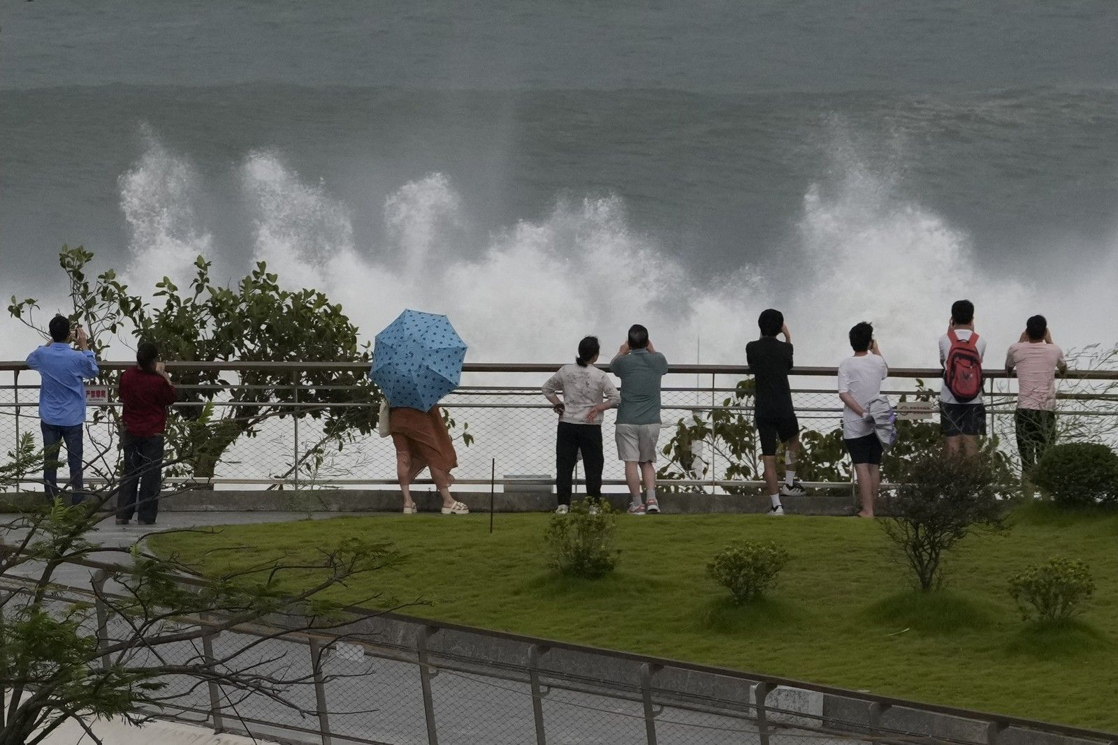 Κάτοικοι στο Σενζέν της επαρχίας Γκουανγκντόνγκ στη νότια Κίνα παρακολουθούν τα τεράστια κύματα που χτυπάνε τις ακτές 2025 Ng Han Guan/AP Photo