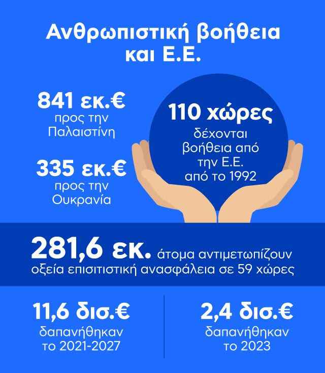 Πόσα χρήματα προορίζονται από την Ε.Ε. για ανθρωπιστική βοήθεια; Πόσα παρείχε στην Ουκρανία και στην Παλαιστίνη; Δείτε infographic του NEWS 24/7.