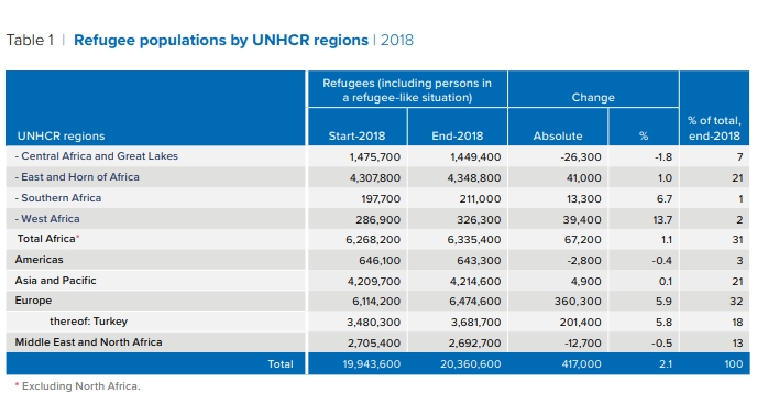 Η θέση της Ευρώπης ανάμεσα στις άλλες Ηπείρους ως προς τη φιλοξενία προσφύγων, για το 2018: