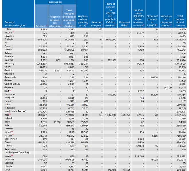 Τα 70,8 εκατομμύρια αποτελούν ένα συντηρητικό νούμερο, κυρίως επειδή η κρίση στη Βενεζουέλα αντικατοπτρίζεται μόνο εν μέρει στον αριθμό αυτόν. Συνολικά, σύμφωνα με τα στοιχεία των χωρών υποδοχής, περίπου 4 εκατ. κάτοικοι έχουν εγκαταλείψει τη Βενεζουέλα, γεγονός που την καθιστά μια από τις μεγαλύτερες πρόσφατες κρίσεις εκτοπισμού παγκοσμίως. Αν και η πλειοψηφία των ανθρώπων αυτών χρήζουν διεθνούς προσφυγικής προστασίας, ως σήμερα μόλις μισό εκατομμύριο περίπου έχουν προχωρήσει επισήμως σε αίτημα ασύλου.