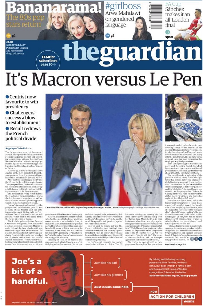 Ο Guardian εκτιμά ότι ο Μακρόν αποτελεί «την καλύτερη ελπίδα για μια μεγάλη χώρα που αντιμετωπίζει πολλά προβλήματα», όμως προειδοποιεί ότι «η απειλή που αποτελεί η άκρα δεξιά δεν έχει ξεπεραστεί».