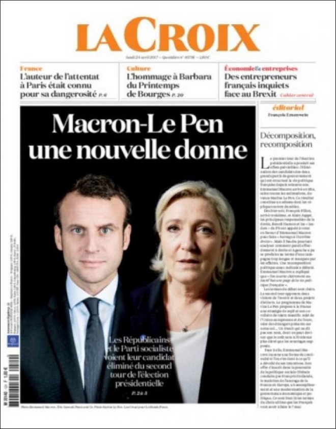 Ίση απόσταση κρατάει η « La Croix», που αφιερώνει χώρο και στους δύο διεκδικητές της προεδρίας, κάνοντας λόγο για μία «νέα συμφωνία».