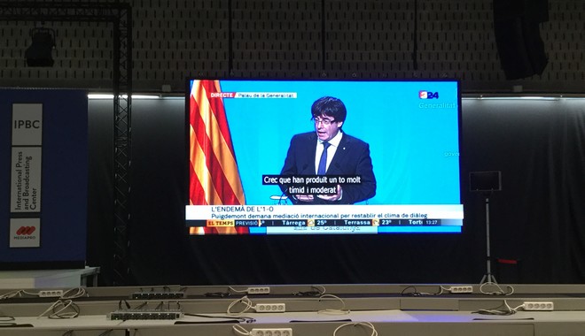 "Η καταλανική κυβέρνηση δεν διακήρυξε την Ανεξαρτησία χτες", δήλωσε βγαίνοντας από την πρωινή πολύωρη σύσκεψη στο κυβερνητικό μέγαρο ο Κάρλες Πουτζντεμόν, καλώντας τον Μαριάνο Ραχόι να δεχτεί την διεθνή διαμεσολάβηση, κάτω από την ομπρέλα της Ε.Ε.
