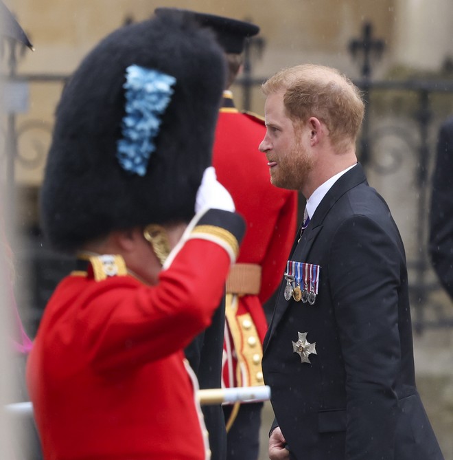 Ο Χάρι ήταν μεταξύ των μελών της βρετανικής βασιλικής οικογένειας που έφτασαν στο Αβαείο του Γουέστμινστερ όσο γινόταν η πομπή του βασιλιά Καρόλου.
