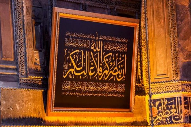 Πίνακα με στίχους από το Κοράνι δώρισε στην Αγία Σοφία ο Τούρκος Πρόεδρος, Ρετζέπ Ταγίπ Ερντογάν, ο οποίος κρεμάστηκε ήδη μέσα στο μνημείο, που πλέον λειτουργεί και πάλι ως τέμενος.