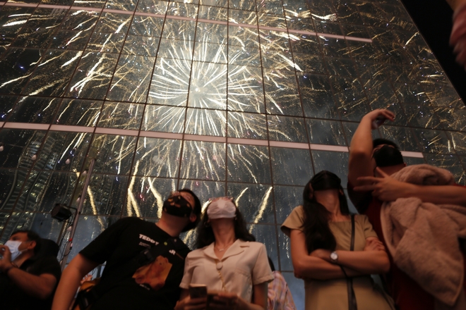 Πλάνα που μετέδωσε το BBC από τα πυροτεχνήματα έδειξαν ελάχιστη κίνηση οχημάτων στους δρόμους και ουσιαστικά κανέναν διά ζώσης θεατή.