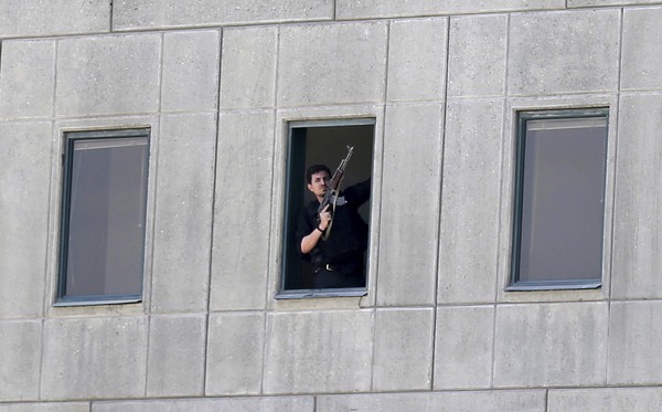 Κάποια στιγμή ο ένας από τους δράστες βγήκε στη λεωφόρο που περνά κοντά στο κοινοβούλιο και πυροβόλησε τους περαστικούς. Οι δυνάμεις ασφαλείας άνοιξαν πυρ εναντίον του, αναγκάζοντάς τον να επιστρέψει στο εσωτερικό του κοινοβουλίου.