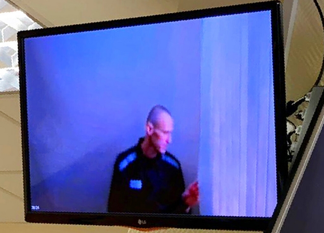 Στην πρώτη του εμφάνιση από την περασμένη εβδομάδα που είπε ότι σταματά την απεργία πείνας, την οποία έκανε για τρεις εβδομάδες, ο Ναβάλνι, με ξυρισμένο κεφάλι, παρέμεινε ασυμβίβαστος, αν και σε βιντεοσύνδεση από τη φυλακή κατά τη διάρκεια της ακροαματικής διαδικασίας, σε μια ξεχωριστή υπόθεση για τη δυσφήμιση ενός βετεράνου του Β’ Παγκοσμίου Πολέμου, φάνηκε αισθητά αδυνατισμένος.