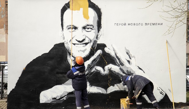 Με εντολή των ρωσικών αρχών, το γκράφιτι που απεικόνιζε τον Αλεξέι Ναβάλνι σε τοίχο κτιρίου της Αγίας Πετρούπολης σβήστηκε.