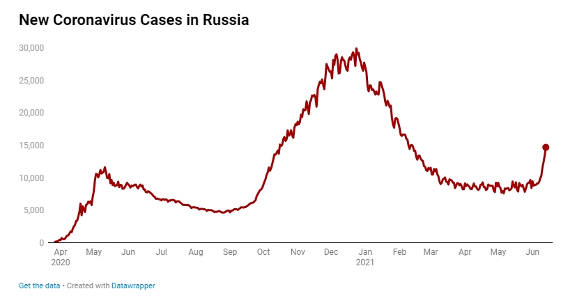 Ανησυχητική η κατάσταση στη Ρωσία, καθώς την Κυριακή 13 Φεβρουαρίου καταγράφηκαν 14.723 νέα κρούσματα κορονοϊού, τα περισσότερα από τις 15 Φεβρουαρίου, όταν είχαν καταγραφεί, 14.207. Η άνοδος άρχισε να διαφαίνεται από τις 10 Ιουνίου, όταν και τα κρούσματα ξεπέρασαν τις 10.000 προκαλώντας ένα μικρό “συναγερμό”.