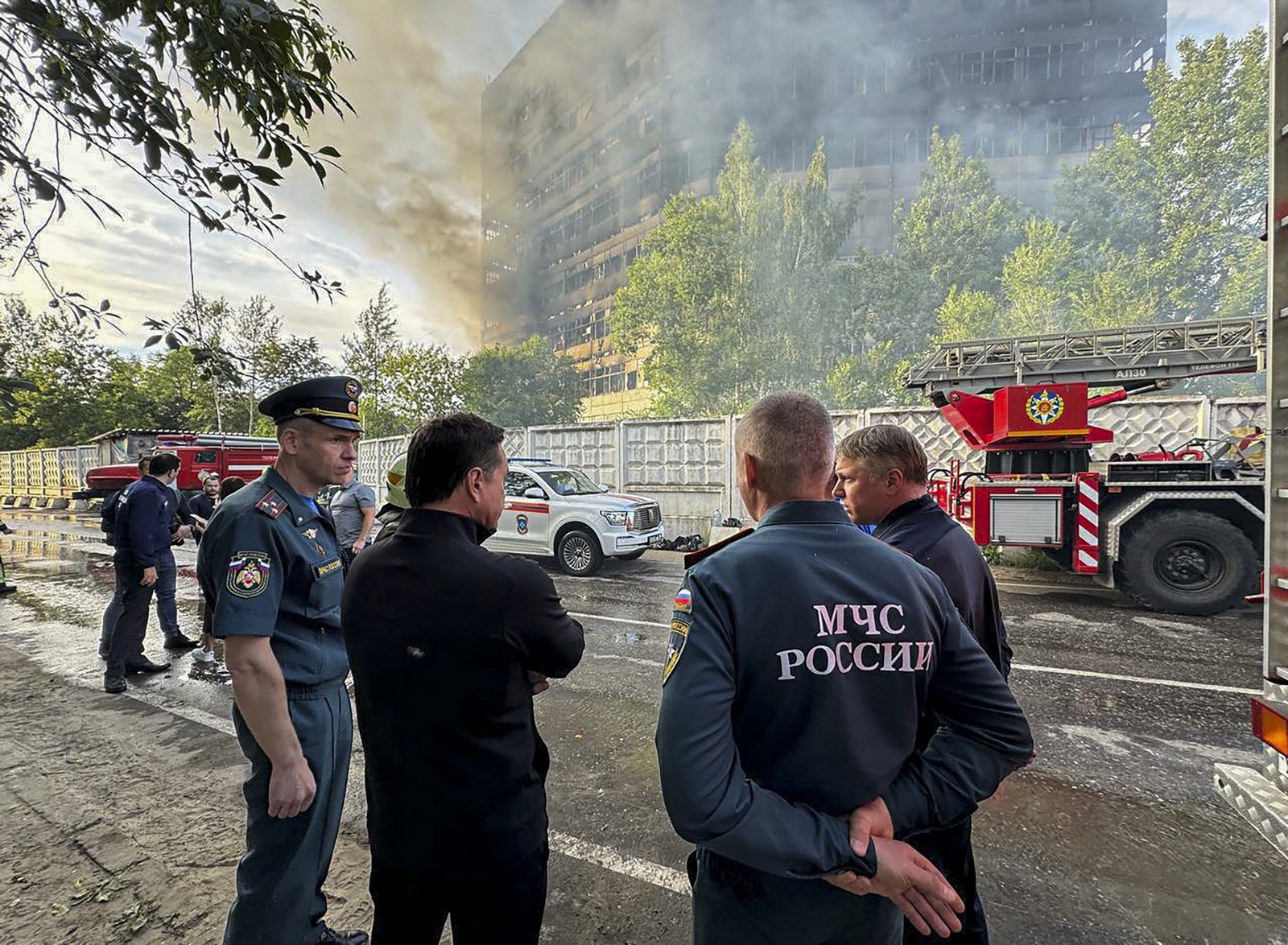 Οκτώ άνθρωποι σκοτώθηκαν σήμερα, εκ των οποίων δύο άνδρες που έπεσαν στο κενό από τους υψηλότερους ορόφους ενός φλεγόμενου οκταώροφου κτιρίου, όπου παλαιότερα στεγαζόταν ένα ερευνητικό ινστιτούτο, λίγο έξω από τη Μόσχα, μετέδωσαν τα ρωσικά μέσα ενημέρωσης.