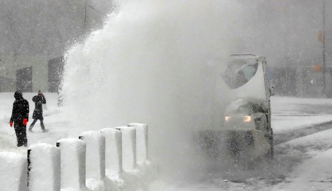 Θυελλώδεις άνεμοι και σφοδρές χιονοπτώσεις σαρώνουν τις βορειοανατολικές ΗΠΑ σήμερα με αποτέλεσμα να κλείσουν σχολεία και δημόσιες υπηρεσίες και να προκληθούν προβλήματα στις μετακινήσεις καθώς τα συνεργεία καθαρισμού δίνουν μάχη με τον χρόνο για να απομακρύνουν το χιόνι από τους δρόμους προτού ο υδράργυρος βουτήξει πολλούς βαθμούς κάτω από το μηδέν και το χιόνι μετατραπεί σε παγετό.