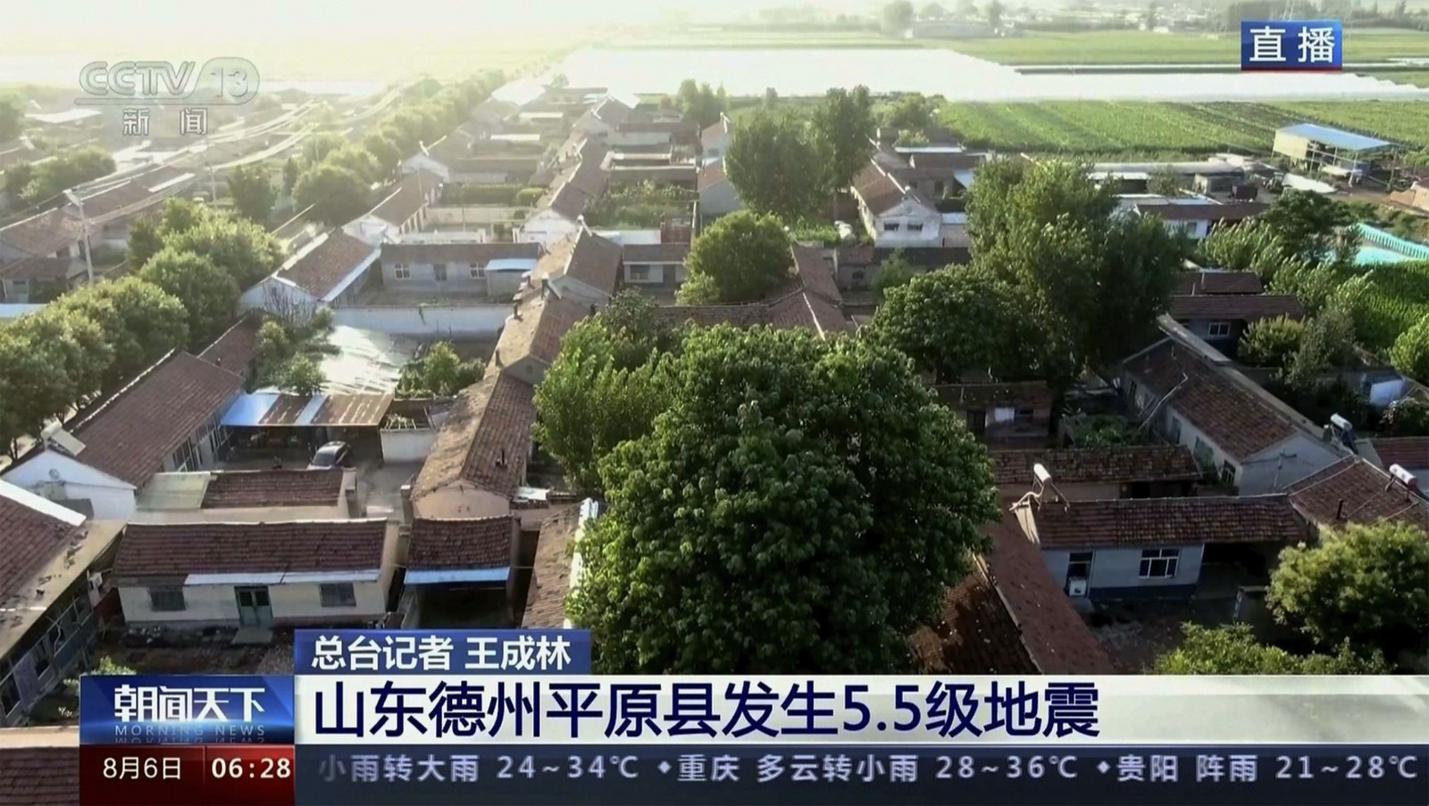 Ισχυρή σεισμική δόνηση μεγέθους 5,5 βαθμών της κλίμακας Ρίχτερ σημειώθηκε το πρωί της Κυριακής (06/08) στην επαρχία Σαντόνγκ της ανατολικής Κίνας.