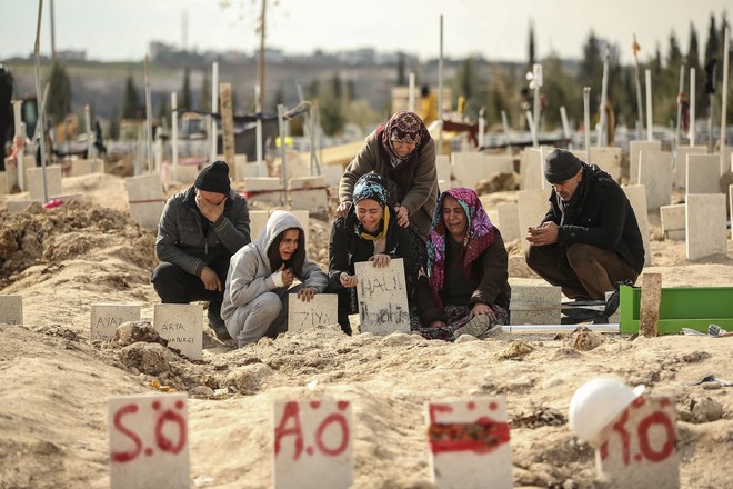 Στην περιοχή Αφρίν στη βορειοανατολική Συρία, επεκτάθηκε ένα νεκροταφείο με αυτοσχέδιους ομαδικούς τάφους. Στη νότια τουρκική πόλη Osmaniye, ένα νεκροταφείο γέμισε, ενώ έξω από το Kahramanmaras, κοντά στο επίκεντρο του σεισμού, ένα αυτοσχέδιο νεκροταφείο γέμισε με τόσα πτώματα που ξύλινες σανίδες και τσιμεντόλιθοι που συγκεντρώθηκαν από τα συντρίμμια έπρεπε να χρησιμεύσουν ως επιτύμβιες στήλες.