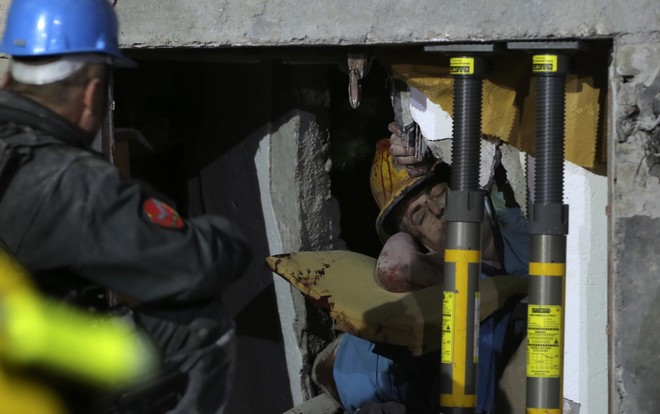Υπό τα αγωνιώδη βλέμματα των κατοίκων, οι διασώστες ψάχνουν εξονυχιστικά στα ερείπια, απ’ όπου κατά διαστήματα ακούγονται ακόμη οι κραυγές των εγκλωβισμένων. Μόλις καταφέρνουν να βγάλουν κάποιον έξω, ο θρήνος μετατρέπεται σε χαρά.