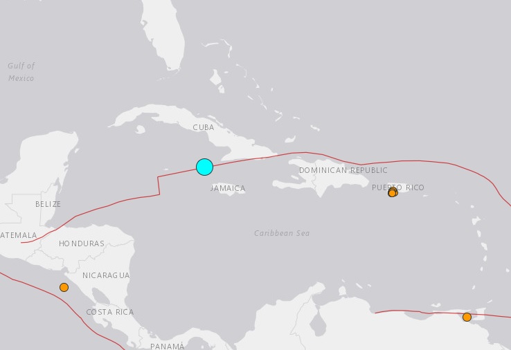 Ισχυρός σεισμός σημειώθηκε το βράδυ της Τρίτης (ώρα Ελλάδας) στη θαλάσσια περιοχή μεταξύ της Κούβας και της Τζαμάικας. Σύμφωνα με το Αμερικανό Γεωλογικό Ινστιτούτο, η δόνηση ήταν μεγέθους 7,7 βαθμών της κλίμακας Ρίχτερ.