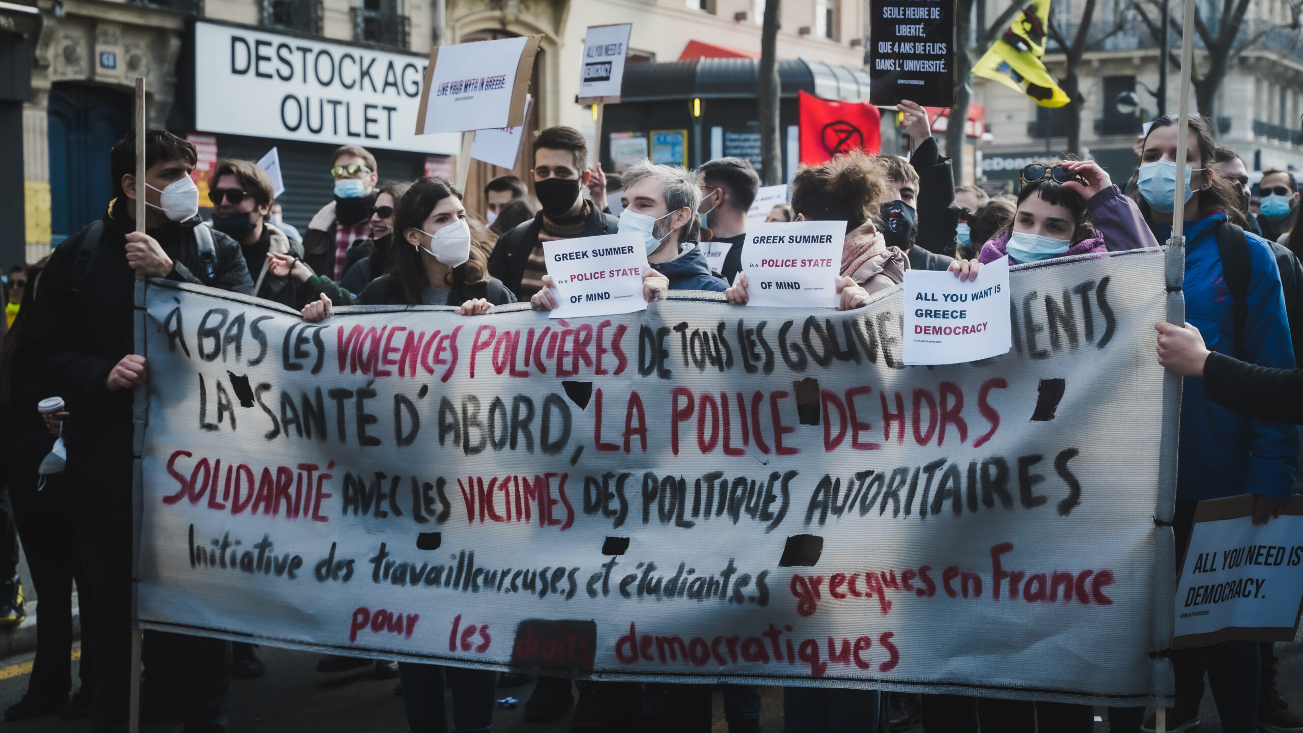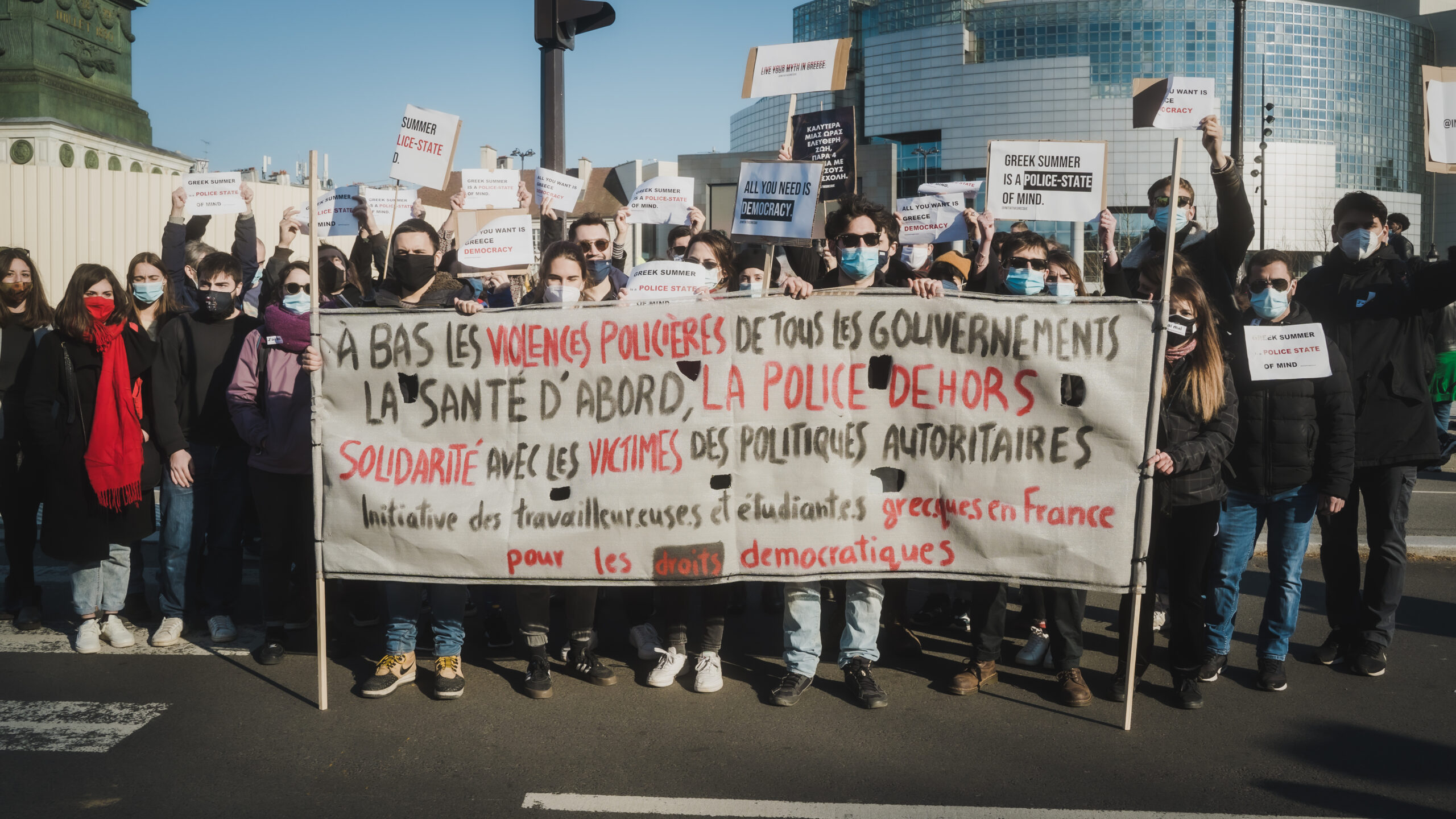 Είμαστε νέοι/-ες Έλληνες εργαζόμενοι/-ες και φοιτητές/-τριες, που ζούμε στο Παρίσι και παρακολουθούμε εξοργισμένοι/-ες την αυταρχική πολιτική της ελληνικής κυβέρνησης που κορυφώθηκε τις τελευταίες εβδομάδες. Ως πρωτοβουλία που γεννήθηκε από τα κάτω και οργανώνεται αμεσοδημοκρατικά, χωρίς να εκπροσωπεί κανένα πολιτικό κόμμα, εκφράζουμε την αλληλεγγύη μας στον ελληνικό λαό που αντιστέκεται στην αστυνομική καταστολή και υπερασπίζεται τη δημοκρατία. Κρούουμε τον κώδωνα του κινδύνου ενάντια σε αυτό το αυταρχικό καθεστώς υπό κατασκευή, ενάντια στην καταστολή της ελευθερίας του λόγου και της σκέψης, ενάντια στην καταπάτηση των θεμελιωδών ανθρωπίνων δικαιωμάτων στη χώρα μας. Ελπίζουμε ότι ο αγώνας μας θα ενταχθεί στον αγώνα του γαλλικού λαού, ενάντια στον ρατσισμό και την ατιμωρησία της αστυνομίας, των φυλακών και της δικαστικής βίας. Επικροτούμε τις εκκλήσεις για δικαιοσύνη για τα θύματα αστυνομικής βίας. Τέλος, στεκόμαστε αλληλέγγυοι με τον αγώνα για την κατάργηση του νέου νόμου περί ασφάλειας, ο οποίος υπονομεύει την ελευθερία ενημέρωσης, ενώ κανονικοποιεί την παρακολούθηση.