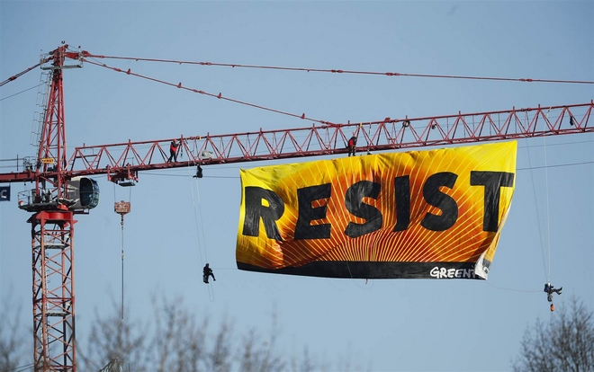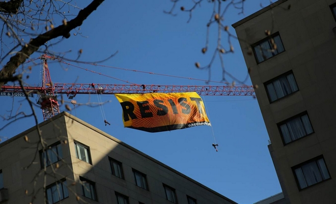 Ακτιβιστές της Greenpeace διαμαρτυρόμενοι για τις αποφάσεις του Τραμπ για το περιβάλλον, σήκωσαν ένα τεράστιο πανό κοντά στον Λευκό Οίκο (Pics)