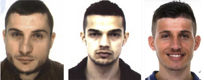 This combo picture made with mugshots released by Italian Police and Carabinieri shows, from left, three men identified as Arjan Babaj, Fisnik Bekaj and Dake Haziraj, the three Kosovans who were arrested in the city of Venice, Italy, after one was caught on a phone intercept proposing they bomb the Rialto bridge while others lauded the recent attack in London. Venice prosecutor Adelchi d'Ippolito said Thursday, March 30, 2017 a search of a Venice apartment showed the suspects were getting in physical shape and watching videos of Islamic extremists on how to carry out knife attacks. (Italian Police/Carabinieri via AP) AP