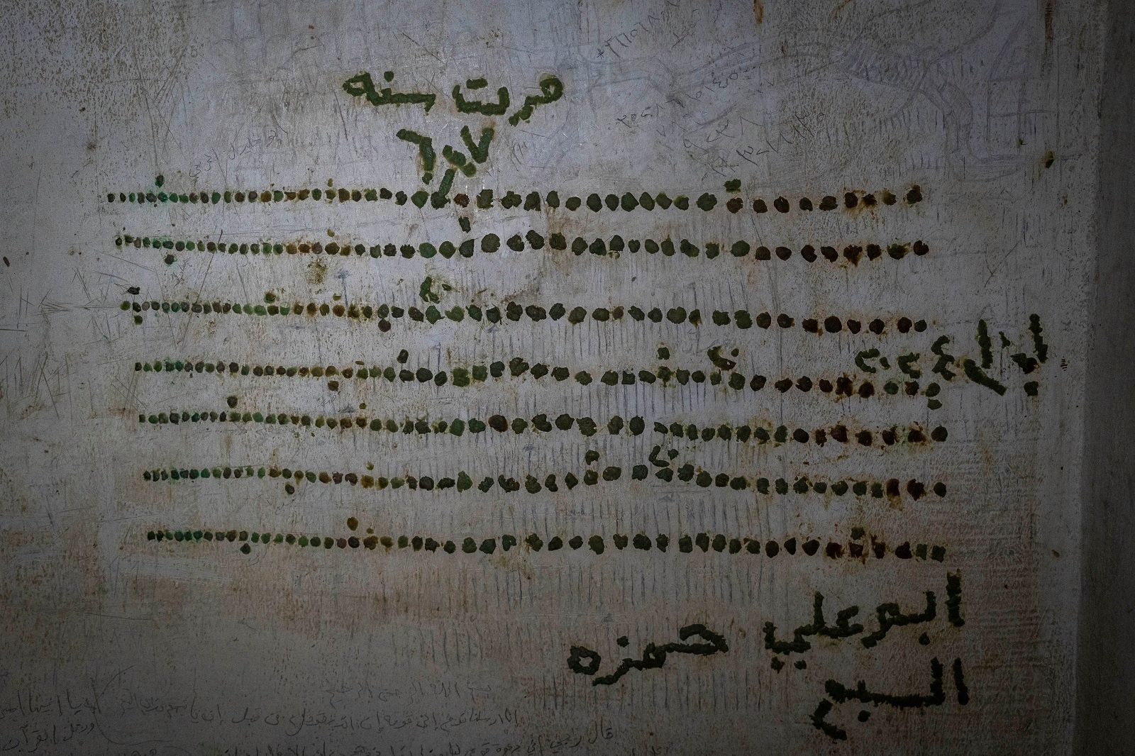 Ο φωτορεπόρτερ του Asocciated Press, Mosa’ab Elshamy, που πραγματοποιεί το οδοιπορικό του στα παγωμένα, σκοτεινά κελιά των φυλακών του Άσαντ, γράφει πως «τα χαραγμένα μηνύματα στους τοίχους μοιάζουν να ψιθυρίζουν και να κλαίνε γύρω σου. Εκλιπαρούν τον Θεό και λαχταρούν αγαπημένα πρόσωπα. Συχνά μυστηριώδη, είναι ανατριχιαστικά αποσπάσματα σκέψεων και φόβων από το μυαλό ανώνυμων ανθρώπων που υπέμειναν αδιανόητα βασανιστήρια».