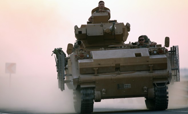 Τουρκικά άρματα μάχης προελαύνουν προς τα σύνορα AP Photo/Lefteris Pitarakis
