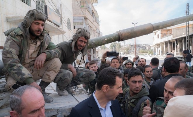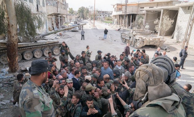 Ο Σύρος Πρόεδρος επισκέφτηκε θέσεις του στρατού και φωτογραφήθηκε δίπλα σε άρματα μάχης την ώρα που οι άμαχοι εγκαταλείπουν την πόλη μαζικά