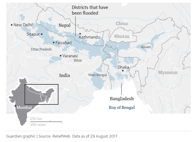 Επί του παρόντος, η Ινδία, το Νεπάλ και το Μπαγκλαντές πλήττονται από τις πιο ακραίες πλημμύρες που έχουν συμβεί στις χώρες αυτές τα τελευταία δέκα χρόνια. Οι τεράστιες ποσότητες νερού έχουν προκαλέσει τον θάνατο πάνω από 1.200 ανθρώπων ενώ περίπου 40 εκατομμύρια έχουν αναγκαστεί να εγκαταλείψουν τις οικίες τους. Νούμερα που φαντάζουν πραγματικά, ασύλληπτα.