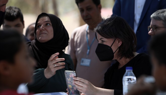 Τη δομή φιλοξενίας του Σχιστού επισκέφθηκε η υπουργός Εξωτερικών της Γερμανίας, Ανναλένα Μπέρμποκ, συνοδευόμενη από τον υπουργό Μετανάστευσης και Ασύλου, Νότη Μηταράκη.