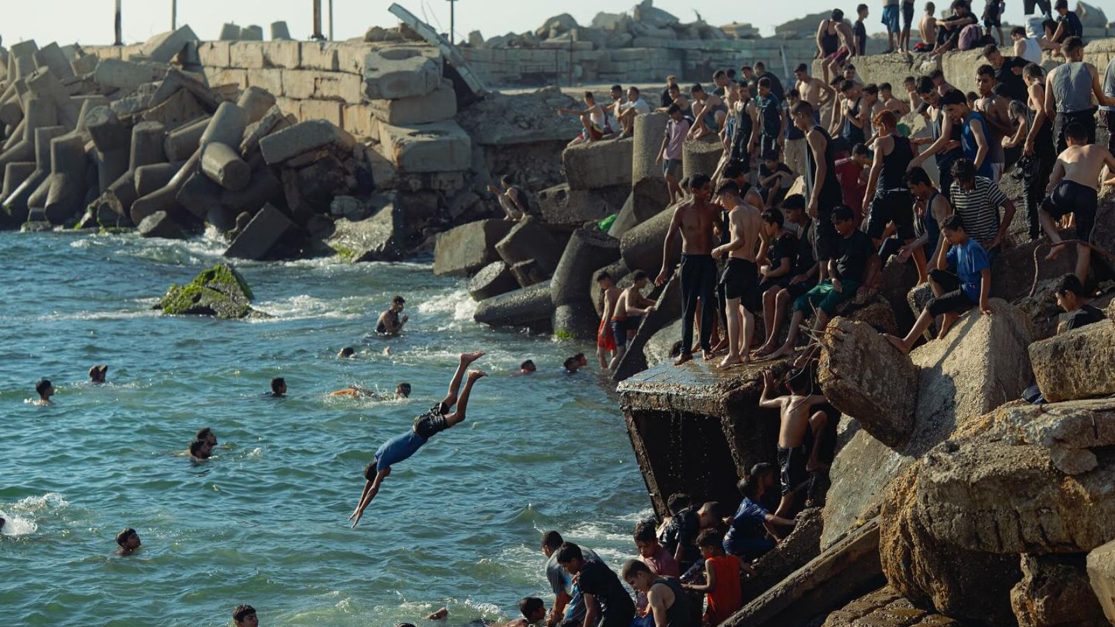 Εκατοντάδες χιλιάδες που καταφεύγουν σε κατεστραμμένα κτίρια για να γλιτώσουν από τις βόμβες και την πείνα έχουν αφεθεί να επιβιώσουν μόνοι τους. Χωρίς σαφή εικόνα για το μέλλον τους, οι κάτοικοι περιμένουν νέα για την επόμενη αποστολή τροφίμων ή τον ξαφνικό ήχο αλμυρού νερού από τις σωληνώσεις – μια σπάνια ευκαιρία για ντους.