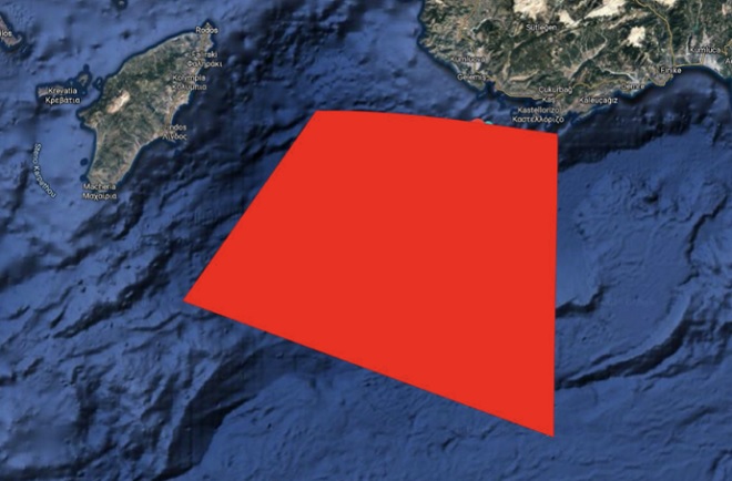 Ωστόσο, η Τουρκία δεν έμεινε μόνο στην περιοχή της Κρήτης και για μια ακόμη φορά προσπαθεί να εξαφανίσει το Καστελόριζο από τον ελληνικό χάρτη. Συγκεκριμένα εξέδωσε μία ακόμη ακυρωτική NAVTEX για ελληνική αναγγελία δέσμευσης περιοχής, μεταξύ Ρόδου και Καστελόριζου.