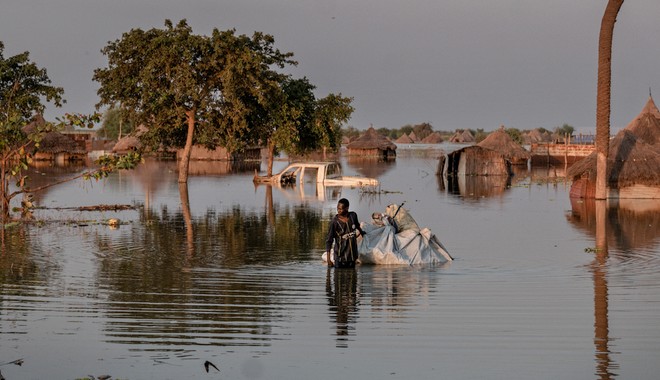 Στο πλημμυρισμένο Σουδάν: Τρεις ώρες μέσα στο νερό, κουβαλώντας μια έγκυο πάνω σε μια κουβέρτα
