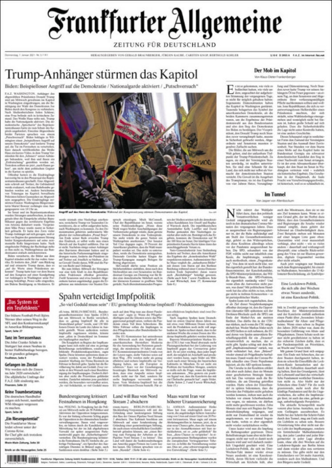 «Το πραξικόπημα της τρέλας» είναι ο τίτλος της Sueddeutsche Zeitung, η οποία κάνει επίσης λόγο για «ντροπή στην Ουάσινγκτον».